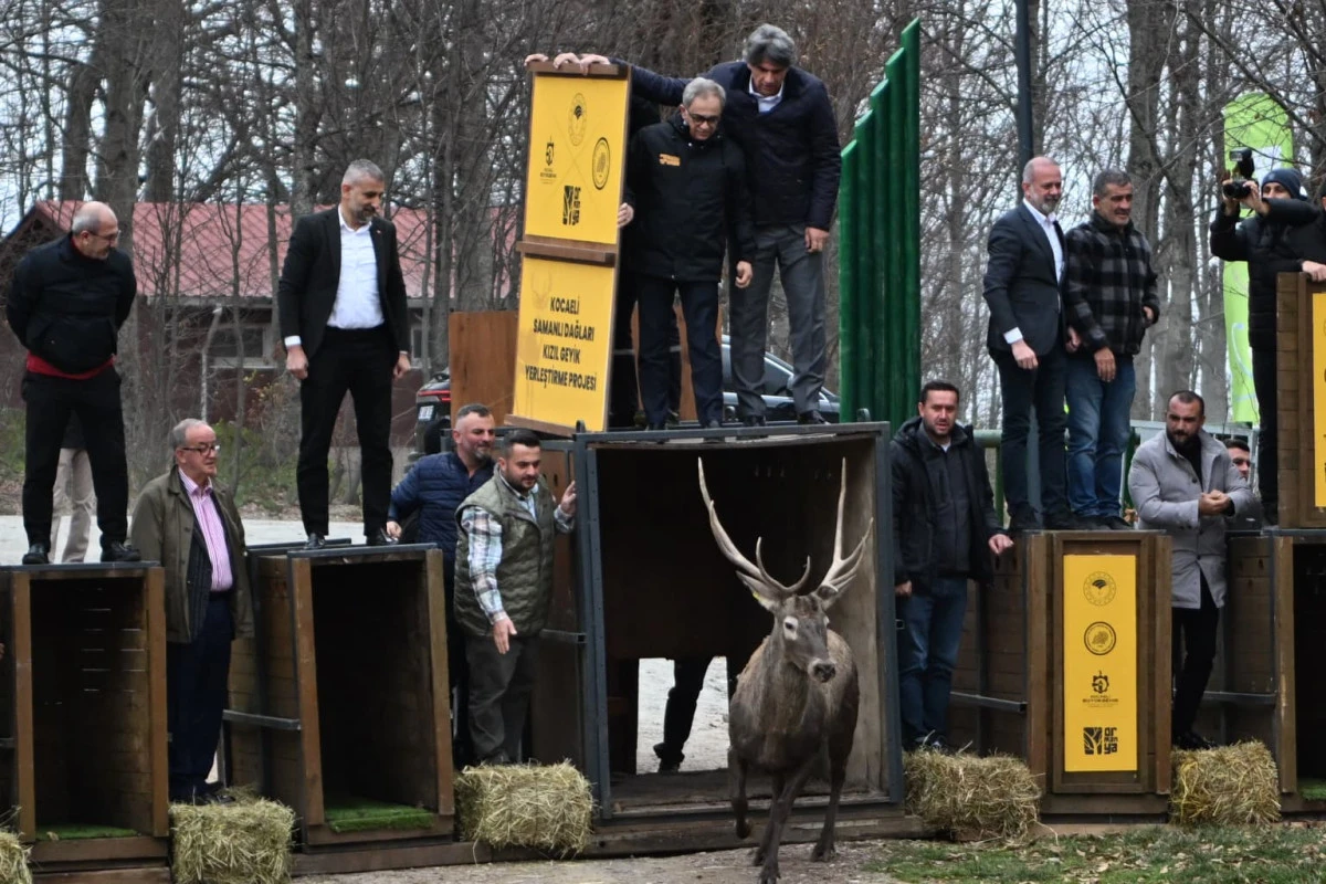 Kocaeli Büyükşehir Belediyesi, “Kızıl Geyik Salımı Projesi” kapsamında kızıl geyik popülasyonunu güçlendirecek çalışmalarına devam ediyor. Geçtiğimiz ay doğaya bırakılan 7 kızıl geyiğin ardından bu kez 8 geyik daha Kuzuyayla’da doğaya salındı. Bu yıl gerçekleştirilen ikinci salım törenine Kocaeli Büyükşehir Belediyesi Genel Sekreteri Dr. Hayri Baraçlı, Kartepe Belediye Başkanı Mustafa Kocaman, Kültür ve Sosyal İşler Dairesi Başkanı Murat Yavuz ve ilgili kurum temsilcileri katıldı. Tarım ve Orman Bakanlığı Doğa Koruma ve Milli Parklar Genel Müdürlüğü iş birliğiyle yürütülen proje, bölgedeki yaban hayatını canlandırma amacıyla önümüzdeki yıl da geyik salınımlarına devam edecek.