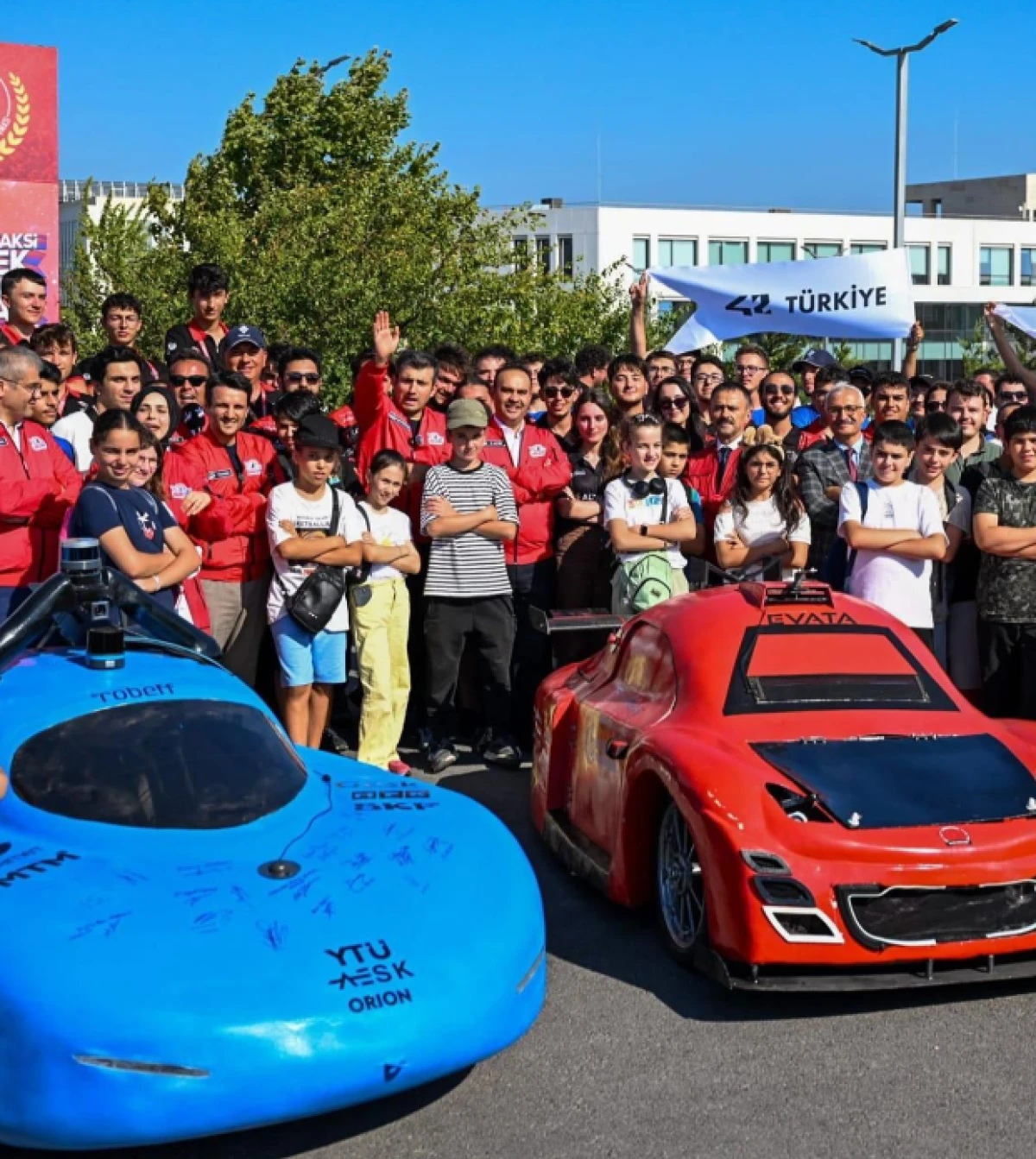 Sanayi ve Teknoloji Bakanı Mehmet Fatih Kacır ile TEKNOFEST Yönetim Kurulu Başkanı ve Türkiye Teknoloji Takımı Vakfı Mütevelli Heyeti Başkanı Selçuk Bayraktar, Robotaksi Binek Otonom Araç Yarışması final etabına katılan öğrencilerle bir araya geldi