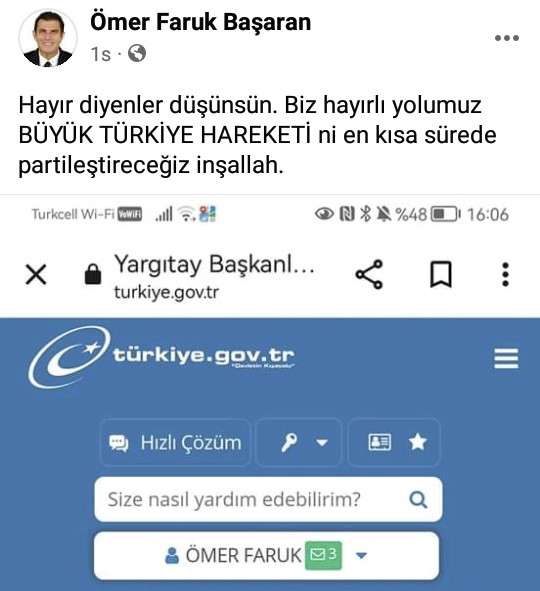 Gelecek Partisi il başkanlığından ayrıldıktan sonra Büyük Türkiye Hareketini kuran başaran, Nail Çiler’in CHP’den aday olmasından kısa bir süre sonra CHP’den milletvekili aday adaylığı başvurusunda bulunmuştu. Gelecek Partisi kurucular kurulunda yer alan ve bir süre il başkanlığı yaptıktan sonra da bu görevinden istifa eden Başaran, daha sonra CHP Kocaeli’den milletvekili aday adayı olmuştu. Başaran, bugün açıklanan listelerde yer bulamayınca CHP’den de anında istifa etti. İstifası ile ilgili açıklama yapan Başaran; “Hayır diyenler düşünsün. Biz hayırlı yolumuz BÜYÜK TÜRKİYE HAREKETİ’ni en kısa sürede partileştireceğiz inşallah” dedi. Başaran’ın bundan sonra siyasi arenada nasıl bir yol izleyeceği merak ediliyor.