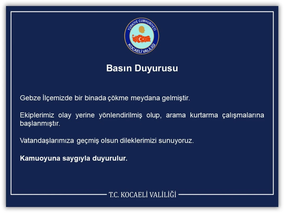 Gebze İlçemizde bir binada çökme meydana gelmiştir.