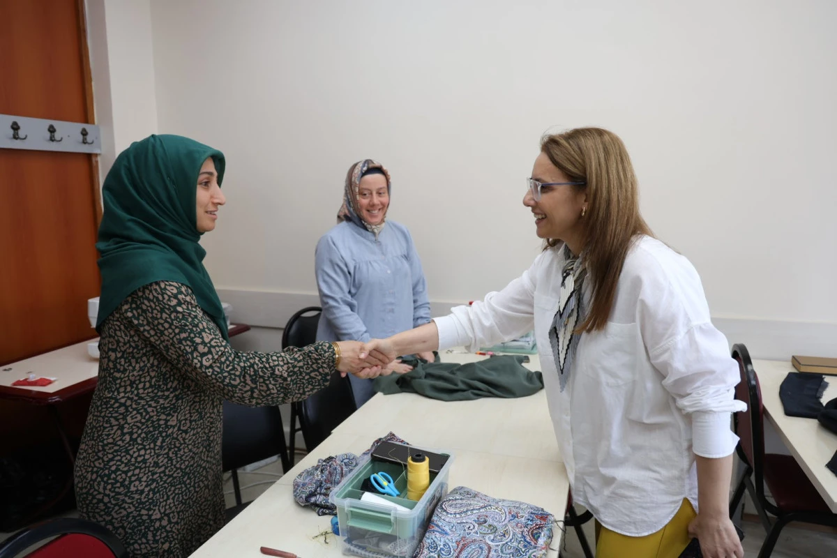 Kocaeli Büyükşehir Belediyesi Başkan Vekili Berna Abiş, KO-MEK’in Mehmet Ali Paşa Kurs Merkezi’ni ziyaret etti. Ev Becerileri ve Anne Çocuk Atölyeleri ile Yaz Kur’an-ı Kerim Kurslarında eğitim alan kursiyer ve çocuklarla yakından ilgilenen Başkan Vekili Abiş, ortaya çıkarılan birbirinden güzel el emeği göz nuru ürünlerin yapılışını izledi. Kursiyer ve çocuklarla sohbet eden Başkan Vekili Abiş, ziyaretin sonunda merkezde eğitim alan kursiyerlere aşure ikramında bulundu.