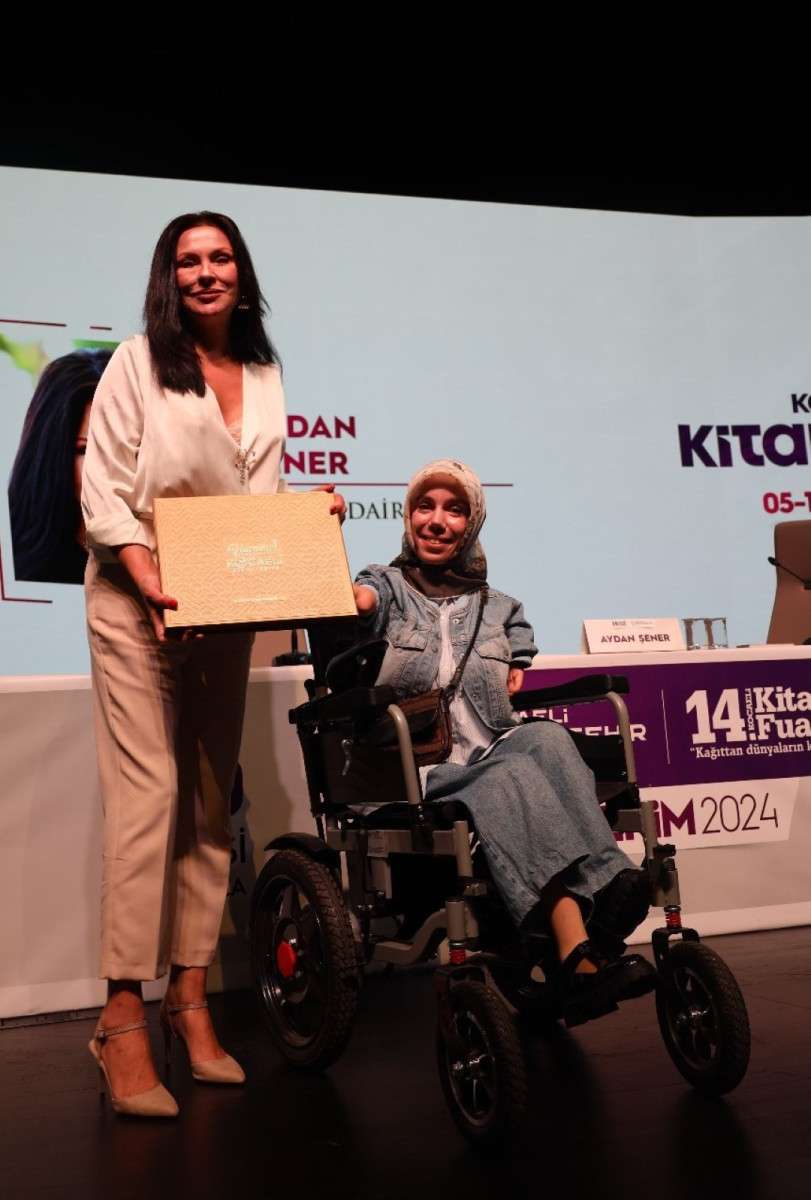 Oyuncu ve yazar Aydan Şener de “Kadına Dair” adını verdiği kitabıyla ilgili konuştu. Şener, kendisini takip edenlere kitap yazmasının ana nedenlerini anlattı. Şener, “Kitabımda, kadınların sorunlarından hayvan haklarına; kariyeri boyunca yaşadıklarından, özel hayatına kadar geniş bir yelpazede duygu ve düşüncelerini kaleme aldım” diye konuştu. Günümüzde değişen güzellik algısına da değinen Şener, “Benim için güzellik iyi kalpli olmak demek. İnsanın iç güzelliği mutlaka yüzüne de yansıyor. Ayrıca güzellik zarafetle birleştiği zaman anlamlı oluyor. Pozitif olmak, insanları, hayvanları ve doğayı sevmek gerekiyor. Pozitif olmak, aklı başında hareket etmek, jest ve mimiklerle süslemek, kendimizi geliştirmek güzelliğimize güzellik katıyor” ifadelerini kullandı. Yazarlara konuşmalarının sonunda Büyükşehir Belediyesi’nin Kocaeli’nin tanıtımı için hazırlamış olduğu Havadan Fotoğraflarla Kocaeli adlı kitap hediye edildi.