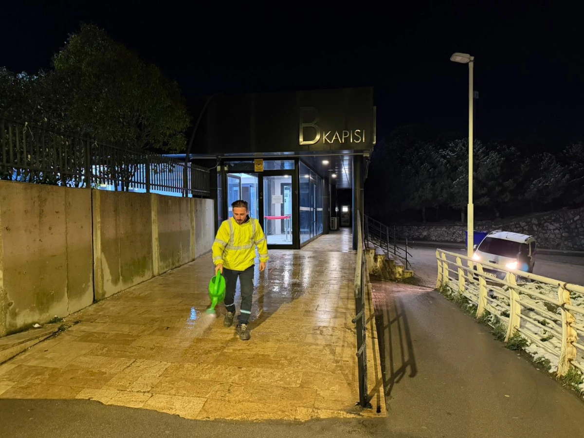 Büyükşehir Belediyesi'ne bağlı ekipler, özellikle vatandaşların yoğun olarak kullandığı durak önleri, üst geçitler, merdivenler ve hastane girişlerinde solüsyon ve tuzlama çalışmaları gerçekleştirdi. Gece boyunca devam eden çalışmalar, yeni yılın ilk saatlerinde de kesintisiz şekilde sürdürüldü.