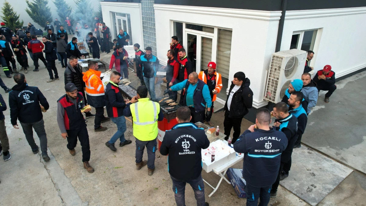 Kocaeli Büyükşehir Belediyesi, yoğun geçmesi beklenen kış dönemi öncesi sahada çalışacak personele moral ve motivasyon sağlamak amacıyla etkinlik düzenledi. Solaklar asfalt şantiyesinde gerçekleşen buluşmada A Takımı ve Yol Bakım Timi personelleri, Genel Sekreter Dr. Hayri Baraçlı’nın da katılımıyla ekmek arası balık keyfi yaşadı.