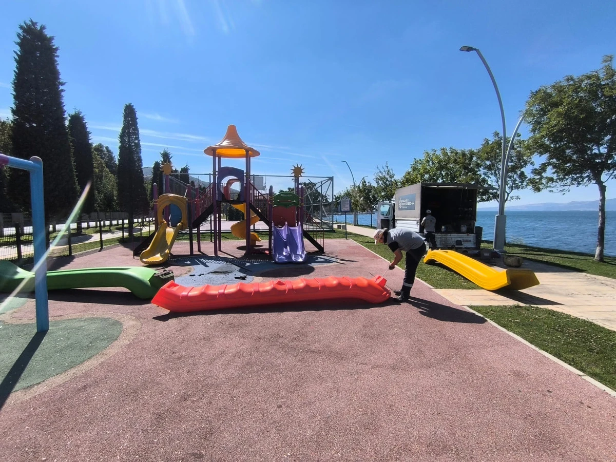 Büyükşehir ekipleri tarafından yürütülen bu çalışmaların periyodik aralıklarla devam edeceği, oyun gruplarının güvenlik standartlarına uygun şekilde hizmet vermesi için gerekli tüm önlemlerin alındığı belirtildi.