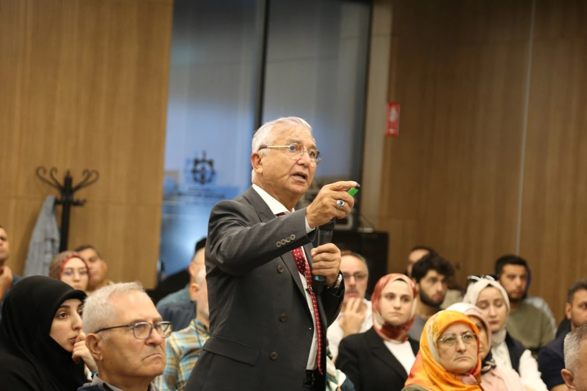 Katılımcılara hazırladığı slaytları okutarak onları söyleşiye dahil eden Akademisyen Caşın, “Benim kanaatim bu savaşın geniş bir alana yayılacağıdır. Amerikan uçakları geldi. Rusya ve Çin İran’a yeni silahlar veriyor. İsrail, ‘Kıyamet harbini biz başlatacağız. Bir an önce savaşı genişletelim, Allah bize bu toprakları verdi’ diyor. Mısırlılar rap rap rap yürüseler orada İsrail kalmaz. Silah atmaya gerek kalmaz” dedi.