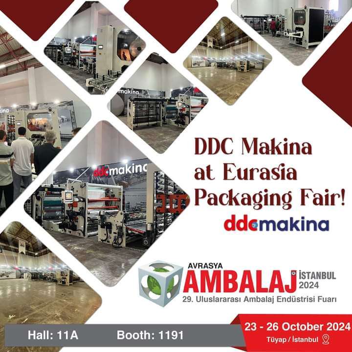 Çok sayıda ülkeden yaklaşık 958 firmanın stant açacağı Avrasya Ambalaj İstanbul Fuarı, 23-26 Ekim 2024 tarihleri arasında İstanbul’daki Tüyap Fuar ve Kongre Merkezi’nde gerçekleşecek. Temizlik konfeksiyon üretim hattı ile fuarda ulusal ve uluslararası alıcılarla buluşacak olan DDC Makina, Salon 11A, Stand 1191’de fuar boyunca makinalarını sergileyecek.