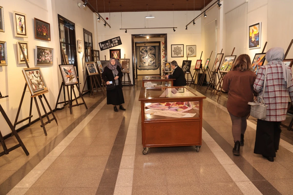 Kırk yama tekniğiyle hazırlanan eserlerde ise sandık köşelerinde kaybolmaya yüz tutmuş kumaşlar, kursiyerlerin emeğiyle yeniden hayat buldu. Eski ürünler, örtüler ve panolar hâline getirilerek gün yüzüne çıkarıldı, geçmişin izleri sanatla buluşturuldu.