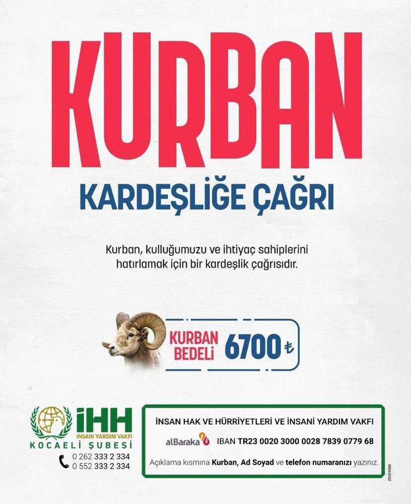 İHH Kocaeli Gazze ve Türkiye dahil 60 ülkede kurban kesecek.