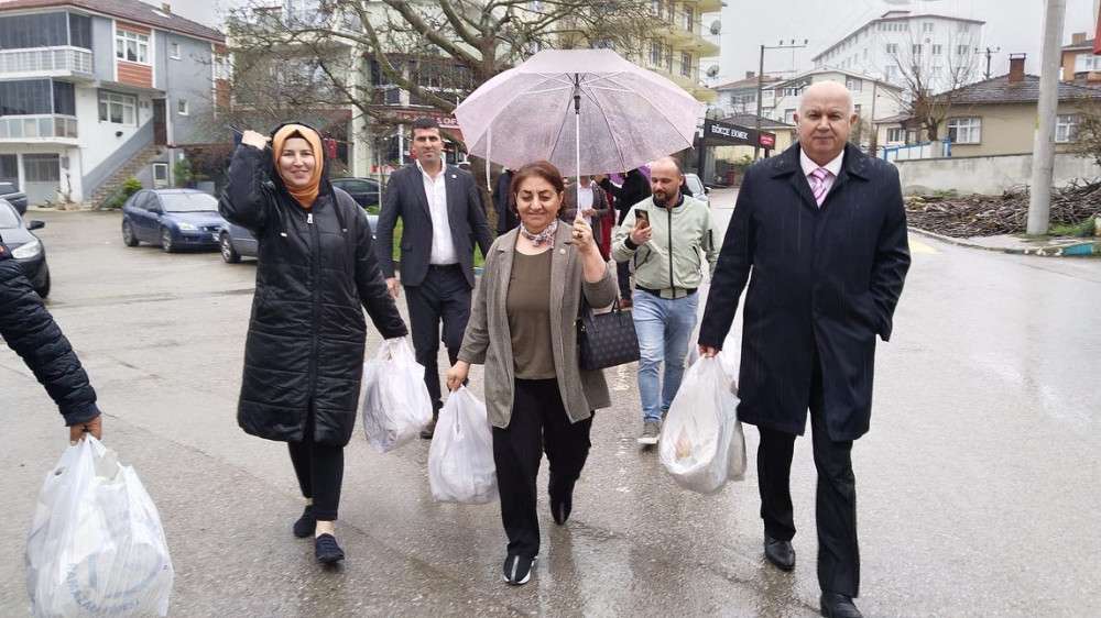 İYİ Parti Milletvekili aday adayı Yüksel Ercan, İYİ Parti Milletvekili aday adayI Ayla İlgün ve İYİ Parti Dilovası teşkilat mensupları yoğun yağmur yağışına rağmen vatandaşların kapısını çalarak evlerine misafir oldukları vatandaşlara Ramazan Pidesi ikram etti.