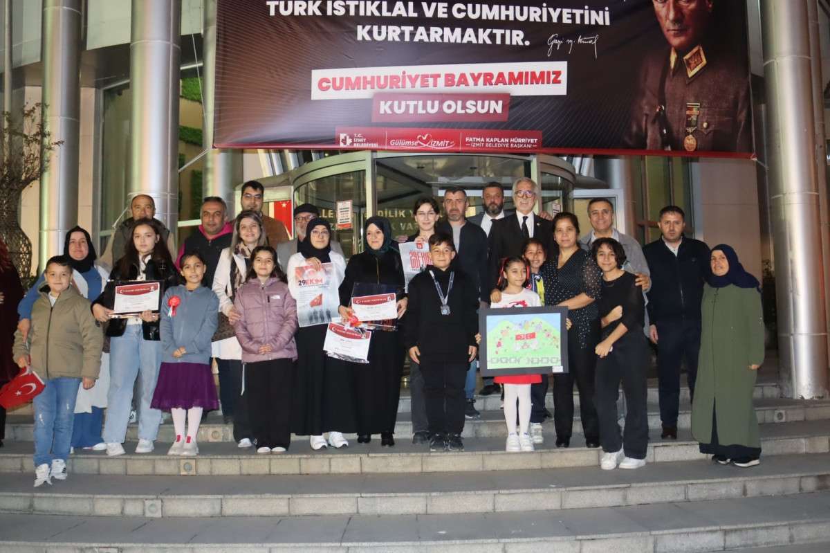 İzmit Belediyesi Kadın ve Aile Hizmetleri Müdürlüğü tarafından 29 Ekim Cumhuriyet Bayramı kapsamında ilkokul, ortaokul ve lise öğrencilerine yönelik ‘Cumhuriyet’ temalı ödüllü yarışmalar düzenledi. İzmit Belediye Meydanı’nda gerçekleştirilen tören ile yarışmalarda dereceye giren çocuklara ödülleri İzmit Belediye Başkan Yardımcısı Yaşar Kardaş tarafından takdim edildi. Yarışma kapsamında yapılan eserleri tümü 1 Kasım tarihine kadar Nikomedia Sanat Galerisi’nde sergilenecek.