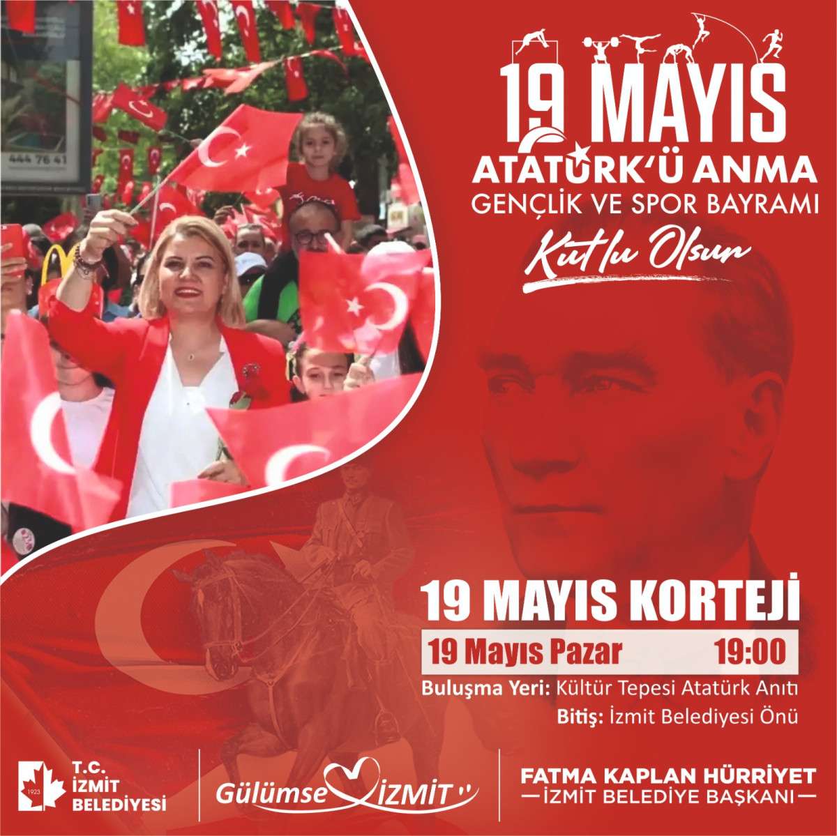 İzmit Belediye Başkanı Fatma Kaplan Hürriyet, tüm İzmitlileri ve civar ilçelerden gelen vatandaşları bu anlamlı günde bir araya gelmeye çağırarak, "Gençlerimizin coşkusunu hep birlikte yaşayacağımız bu özel günlerde tüm halkımızı aramızda görmek istiyoruz," dedi. Bu yılki 19 Mayıs kutlamaları, İzmit’in dört bir yanında coşku ve heyecanla kutlanacak.