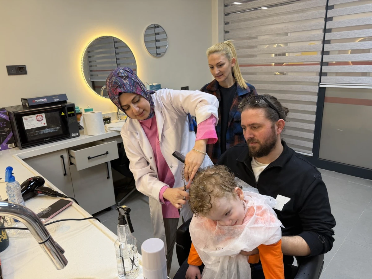 Kocaeli Büyükşehir Belediyesi bünyesinde hizmet veren Gonca Engelsiz Yaşam Merkezi, özel gereksinimli bireylerin yaşam kalitesini artırmaya yönelik çalışmalarına bir yenisini daha ekledi. Merkez bünyesinde faaliyet gösteren kuaför atölyesinde 2,5 yaşındaki Kaan Sultan Demir, ilk saç tıraşını olma heyecanını yaşadı.