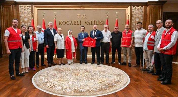 Kızılay Kocaeli Şube Başkanı İbrahim Pay, Başiskele Şube Başkanı Oğuzhan Keleş, Darıca