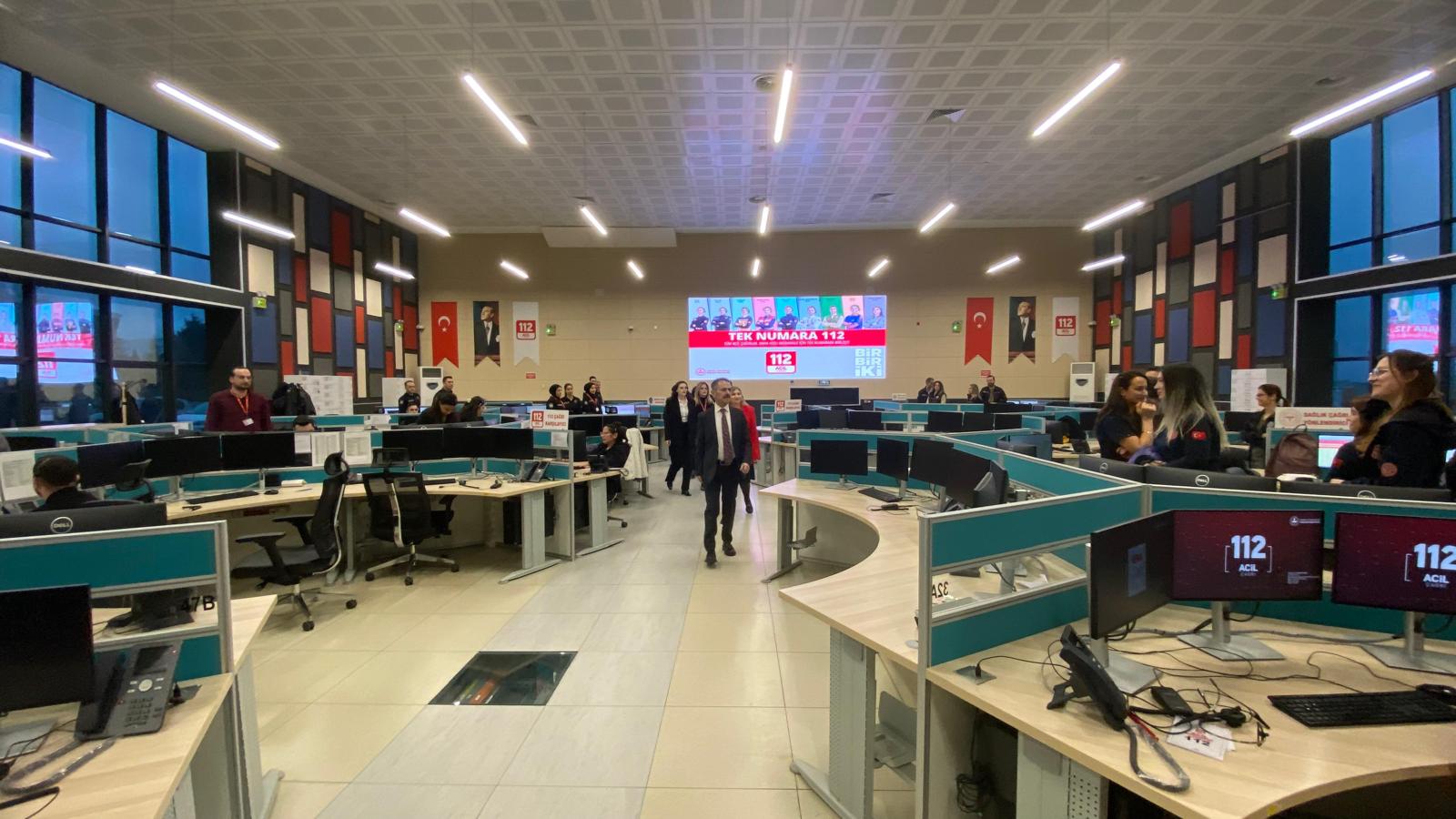 Vali Aktaş, 112 Acil Çağrı Merkez Müdürü Yadigâr Ergül ve 112 Acil Çağrı Merkezi personeli ile sohbette bulunarak çalışmalarında kolaylıklar diledi.