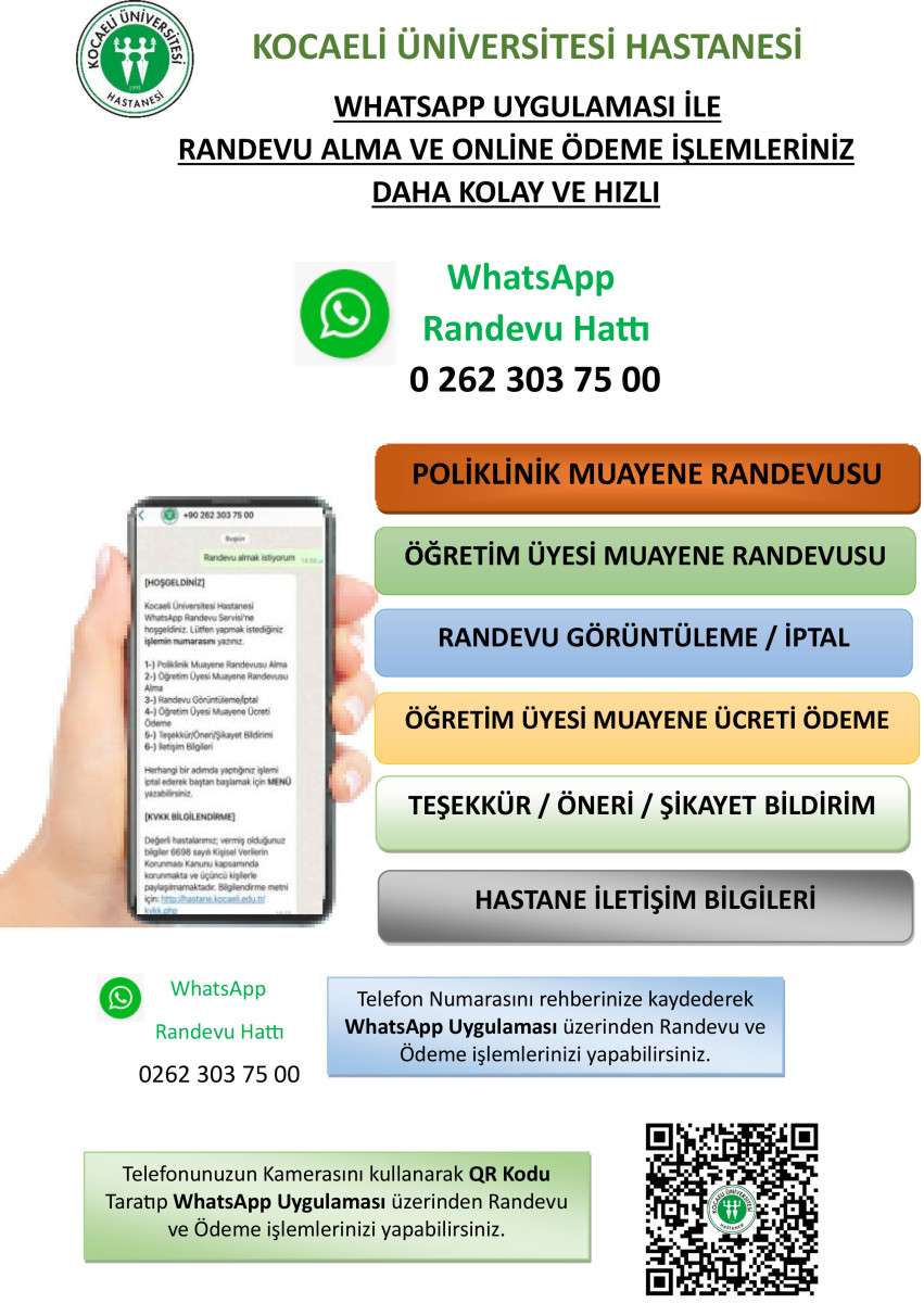 Kocaeli Üniversitesi Hastanesi’nden Dijital Kolaylık: Whatsapp ile Randevu ve Online Ödeme