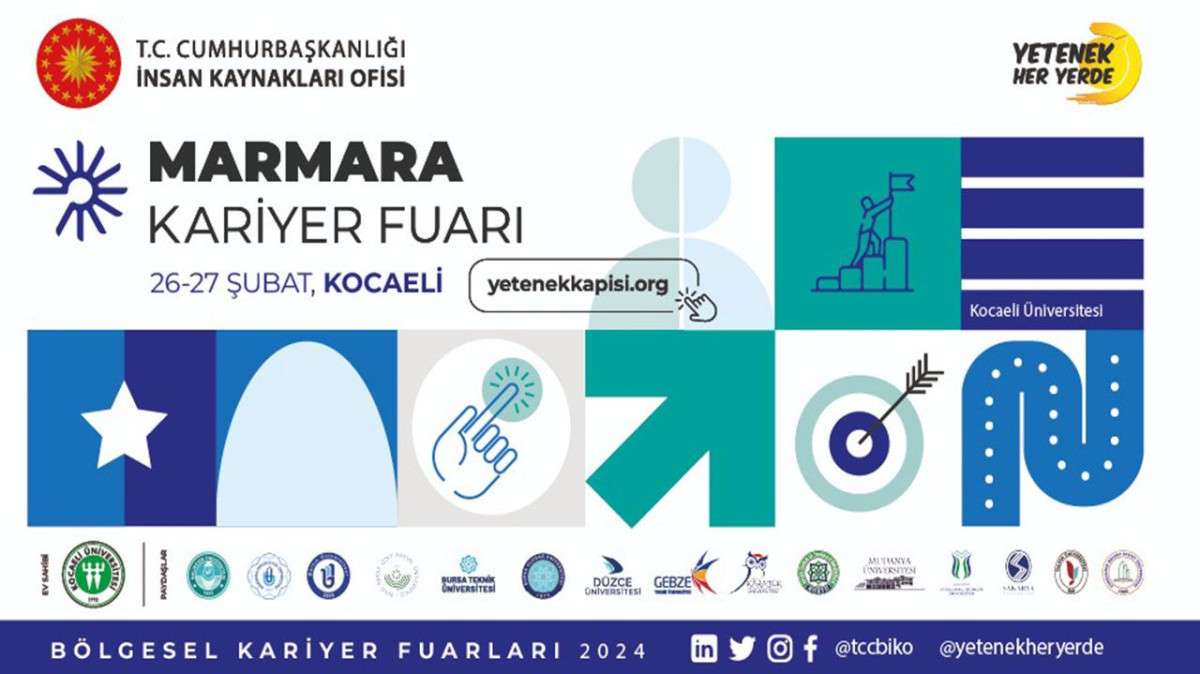 Kocaeli Üniversitesi Kariyer Geliştirme Uygulama ve Araştırma Merkezi (KAGEM) ev sahipliğinde, Cumhurbaşkanlığı İnsan Kaynakları Ofisi Başkanlığı destekleriyle düzenlenecek "Yetenek Her Yerde - Marmara Kariyer Fuarı’na yüzlerce kurum ve kuruluşun katılması bekleniyor. 26-27 Şubat tarihlerinde Kocaeli Kongre merkezinde gerçekleşecek MARMARAKAF’ta 100 bin ziyaretçi, 250 konuşmacı, 1000’ i aşkın firma, binlerce etkileşim ve verimlilik hedefleniyor.