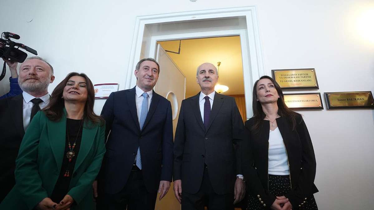 İlk görüşmesini CHP Genel Başkanı Özgür Özel'le yapan Türkiye Büyük Millet Meclisi Başkanı Numan Kurtulmuş, anayasa turu çerçevesinde bugün de ilk olarak DEM Parti Grubunu ziyaret ederek DEM Parti Eş Genel Başkanları Tülay Hatimoğulları Oruç ve Tuncer Bakırhan ile görüştü.