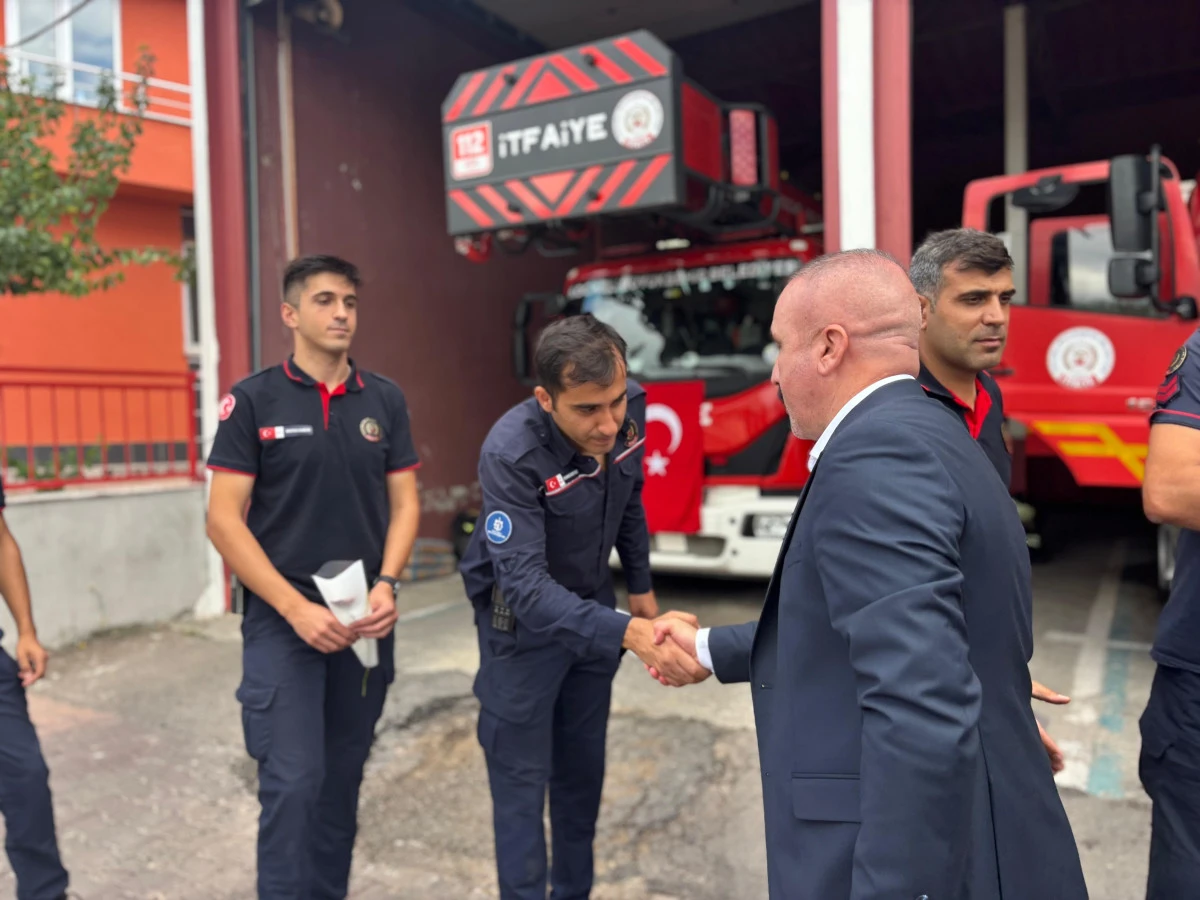 Ziyaret sırasında Başkan Turhan tarafından itfaiye personeline Türk bayrağı ve çiçek takdiminde bulunularak, gösterdikleri fedakârca çalışmalar için teşekkür edildi.