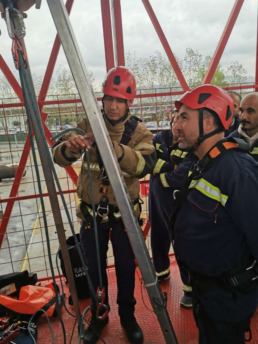 Büyükşehir Belediyesi İtfaiye Dairesi Başkanlığı İtfaiye Önleme ve Eğitim Şube Müdürlüğü Eğitim Birimi (KOBİTEM) tarafından MİMAŞ firması personeline yönelik verilen Kapalı Alanda Çalışma ve Teknik Kurtarma eğitiminde; kapalı alan türleri ve karşılaşılabilecek tehlikeler, kişisel koruyucu donanım, teknik kurtarma ekipmanı, gaz ölçüm cihazları, kazazedeye erişim yöntemleri anlatılırken, yüksekte güvenli çalışma ve kurtarma eğitimde ise; yüksekte güvenli çalışma kuralları, iple erişimde kullanılan ipler ve düğümler, kişisel koruyucu ekipman, malzeme ve donanımlar, iniş ve çıkış teknikleri başta olmak üzere birçok konuda bilgi verildi.