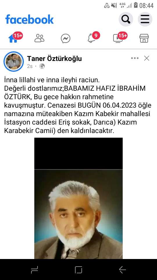 üzüntüye yol açtı. Babasının vefatı ile ilgili açıklama yapan Taner Öztürkoğlu; “ İnna lillahi