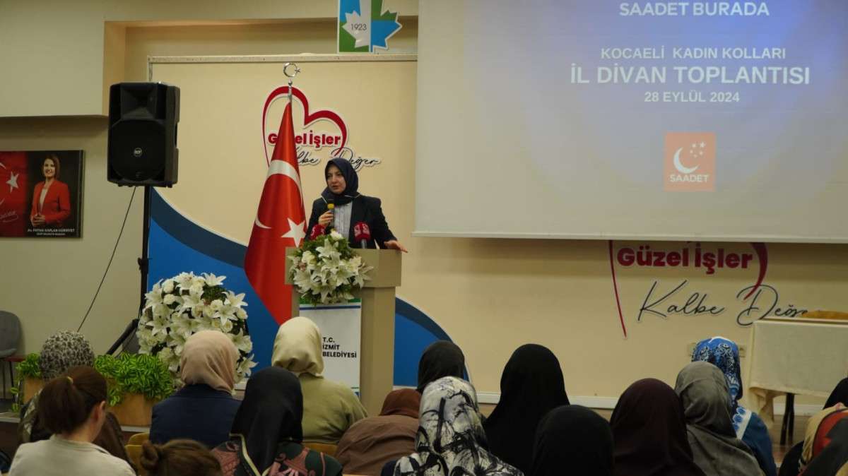 Saadet Partisi Kocaeli Kadın Kolları Eylül Ayı İl Divan Toplantısı, il ve ilçe yönetimlerinin katılımıyla gerçekleştirildi. İl Kadın Kolları Başkanı Reyhan Şengün, toplantıda yaptığı konuşmada ekonomiden eğitime, günden güne artan şiddet olaylarından dış politikaya birçok önemli konuyu değindi.