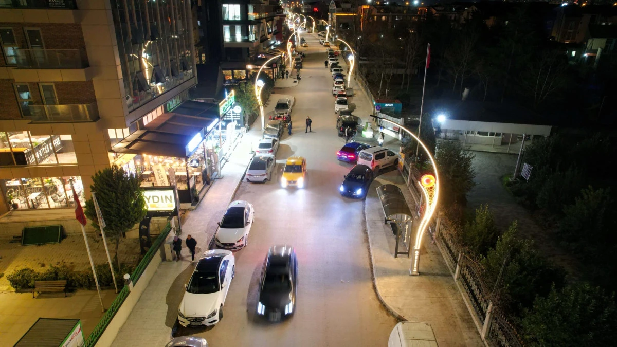 Üstyapı yenilenme çalışmaları kapsamında 37 adet dekoratif aydınlatma direğinin montajının yapıldığı cadde ışıl ışıl görünüme kavuştu.