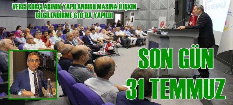 Gebze Ticaret Odası'nda yapılan bilgilendirme toplantısında Kocaeli Vergi Dairesi Başkanı Ayhan Yaman 7143 sayılı Bazı Alacakların Yeniden Yapılandırılmasına İlişkin Kanun kapsamında açıklamalarda bulundu.