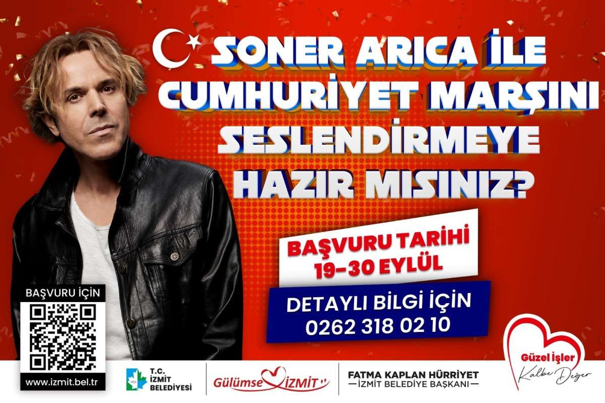 İzmit Belediyesinin, ünlü sanatçı Soner Arıca’nın Cumhuriyetimizin 100. yılına özel yazdığı Cumhuriyet Marşını seslendirmek için kuracağı 1923 kişilik kadın korosunun başvuruları başladı