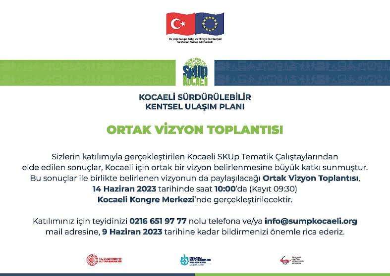 Kocaeli Büyükşehir Belediyesi, Sürdürülebilir Kentsel Ulaşım Planı (SKUP) ortak vizyon toplantısı 14 Haziran Çarşamba Günü Kocaeli Kongre Merkezinde yapılaca