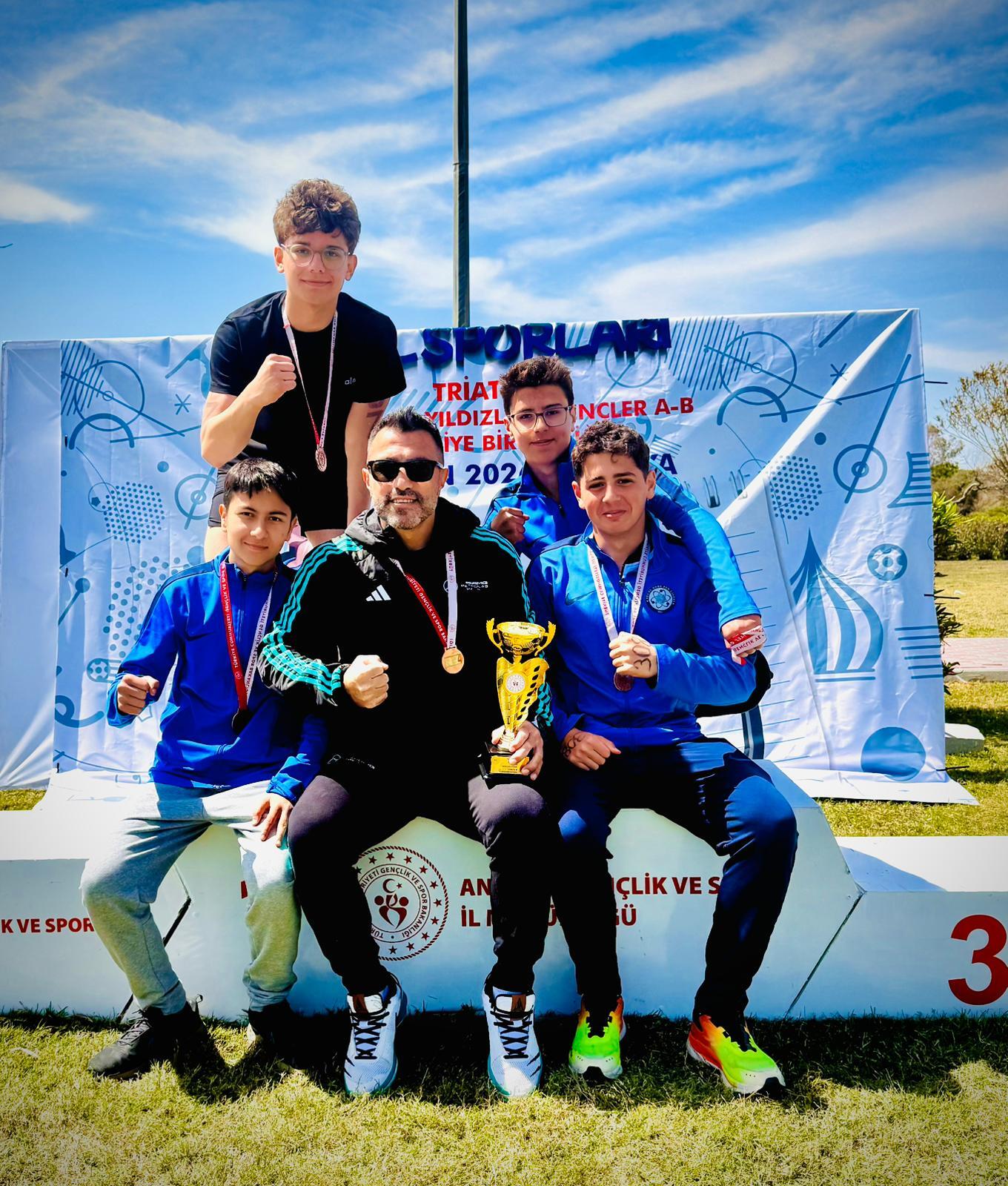 Triatlon takımında yer alan öğrenciler Bahattin Taha Çağır, Ege Berk Kanar, Mehmet Arda Kandemir ve Yiğit Çelik; azimleri, disiplinleri ve üstün performanslarıyla dikkat çekti.